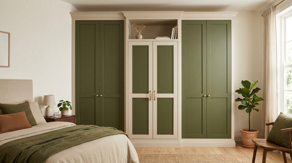 Sage green is everywhere right now – from cafes to living rooms to Instagram feeds. And for good reason. It’s calming without being boring. Combine it with cream panels and you’ve got a wardrobe that looks expensive, trendy, AND peaceful. Three things at once. That’s a win. ✅
